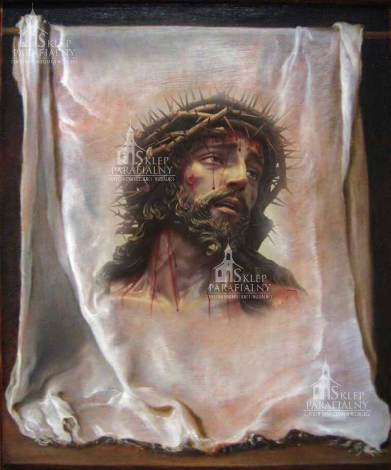 Chusta Św. Weronika- dekoracja przedstawiająca materiał z obliczem Pana Jezusa.