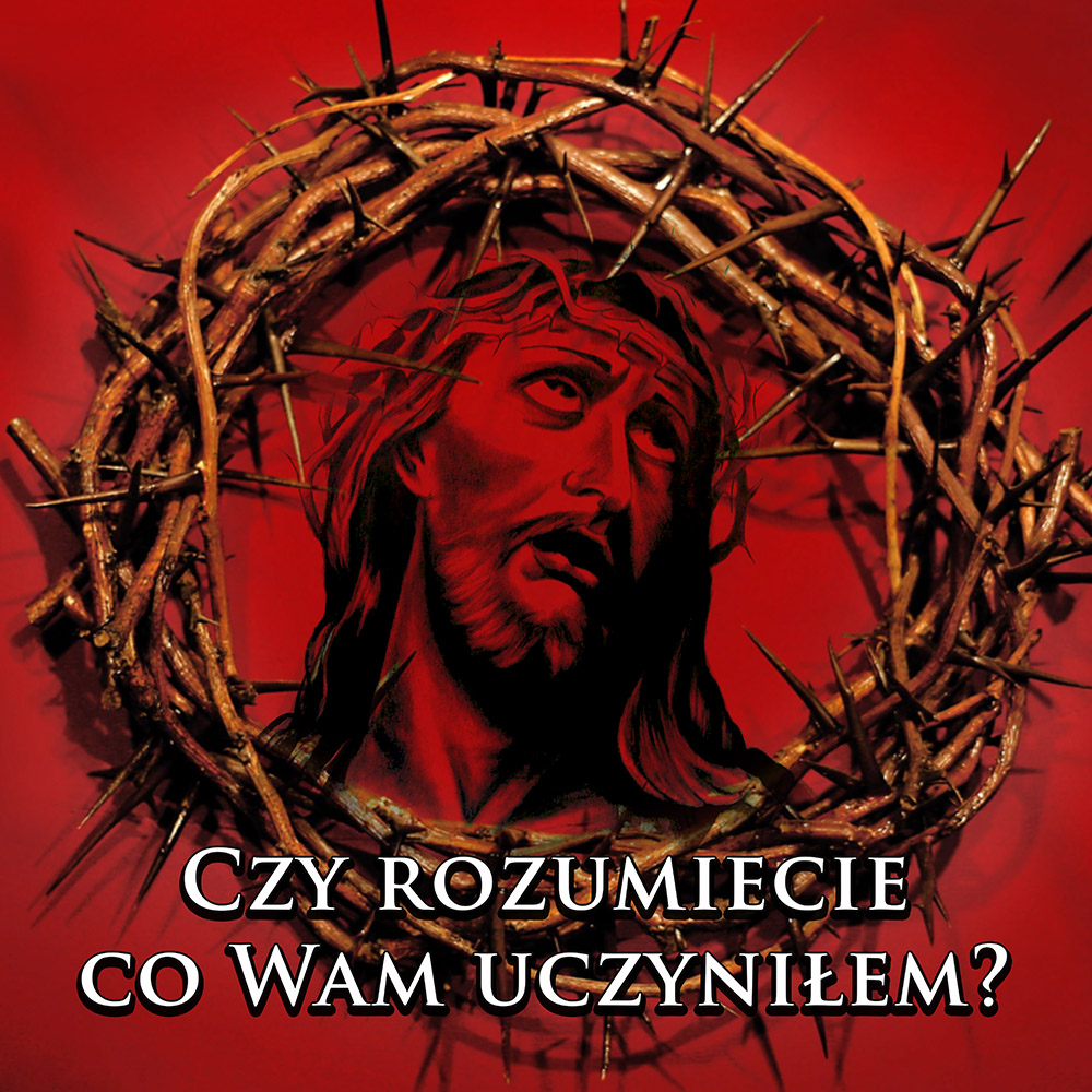 Wielkoformatowe tło do ciemnicy (wzór nr 29) o imponujących wymiarach 300×400 cm. Grafika prezentuje poruszające Oblicze Chrystusa w koronie cierniowej, uzupełnione wymownym pytaniem: „Czy rozumiecie co wam uczyniłem?”.