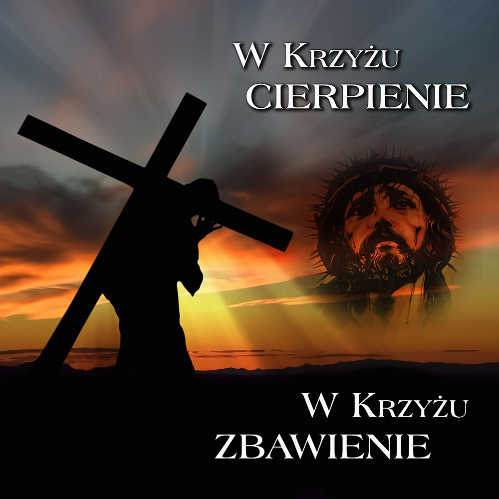 Grafika z przejmującym wizerunkiem Chrystusa i napisem „W Krzyżu Cierpienie, W Krzyżu Zbawienie” posiada matowe wykończenie,